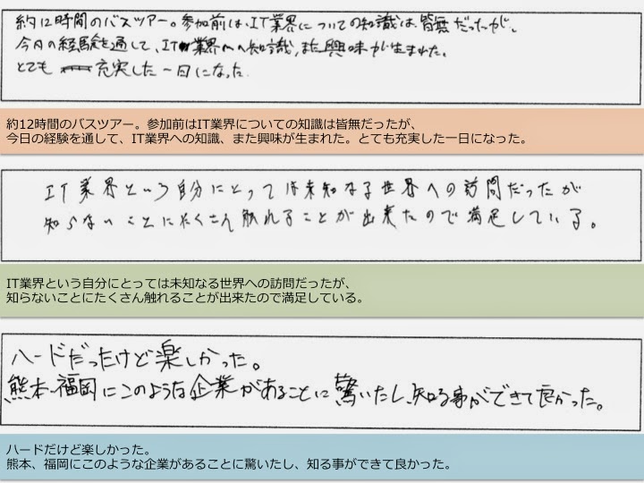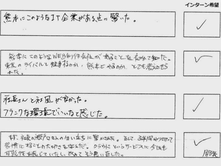 熊本のシステムフォレストさんなんかは、会社の雰囲気と、社長の人柄に惹かれたようです。